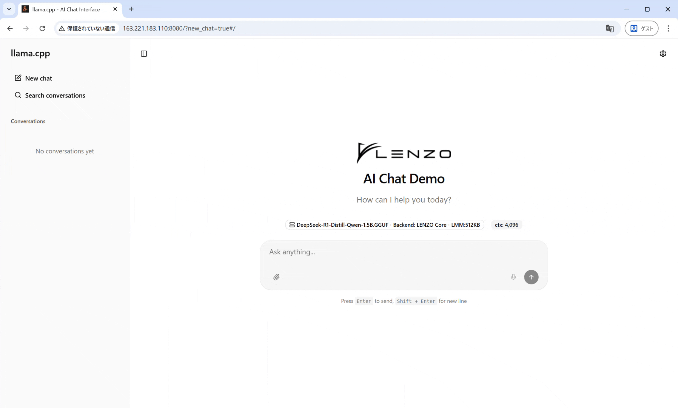 我々のプロジェクト(LENZO)では、汎用アクセラレータIMAX上で大規模言語モデル(LLM)を動作させるにあたり、llama.cpp フレームワークのサーバー機能を中核に据えています。これにより、単なる性能評価にとどまらず、実用的なGUIチャット機能を構築しました。